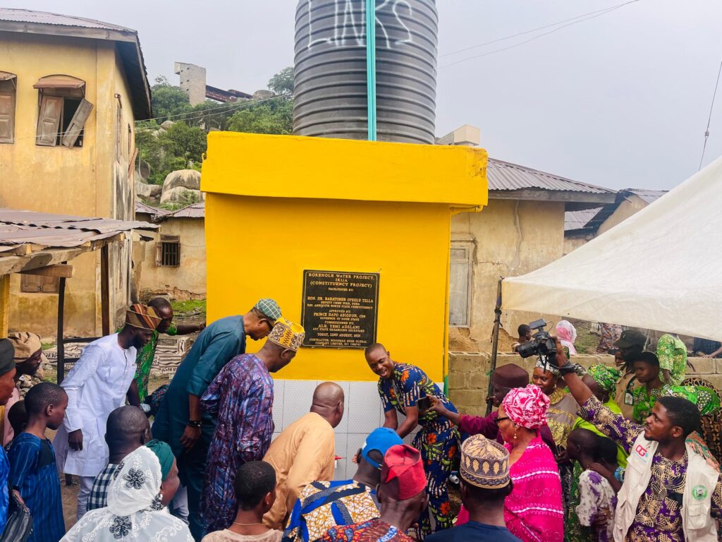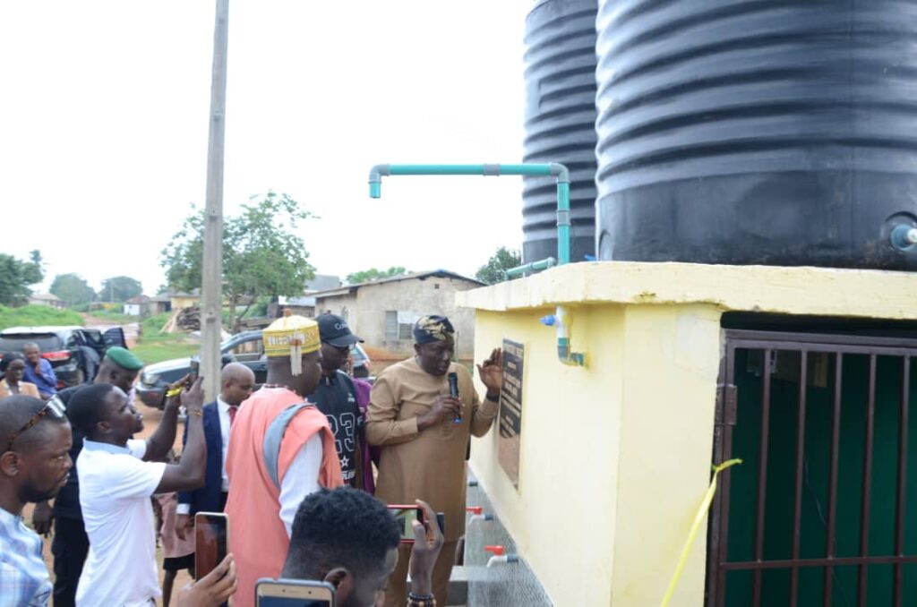 Commissioning of motorised five boreholes facilitated by Hon. Oluseun Adesanya at Oke-Aje, Odosimadegun, Imafon, Ogbogbo and Ilefon in Ijebu North East State Constituency being commissioned by the Governor’s representative, Rt. Hon. Oludaisi Elemide recently.